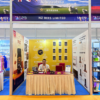 新西兰展区有6个标准展位,参与的会员企业分别是Newina International Limited 以及代理的Pacific Alpacas驼羊绒被子和服饰,Babich百祺复古系列的葡萄酒,NZ Bees的蜂蜜,Birdwave 留学移民,傲医和盈科外服。